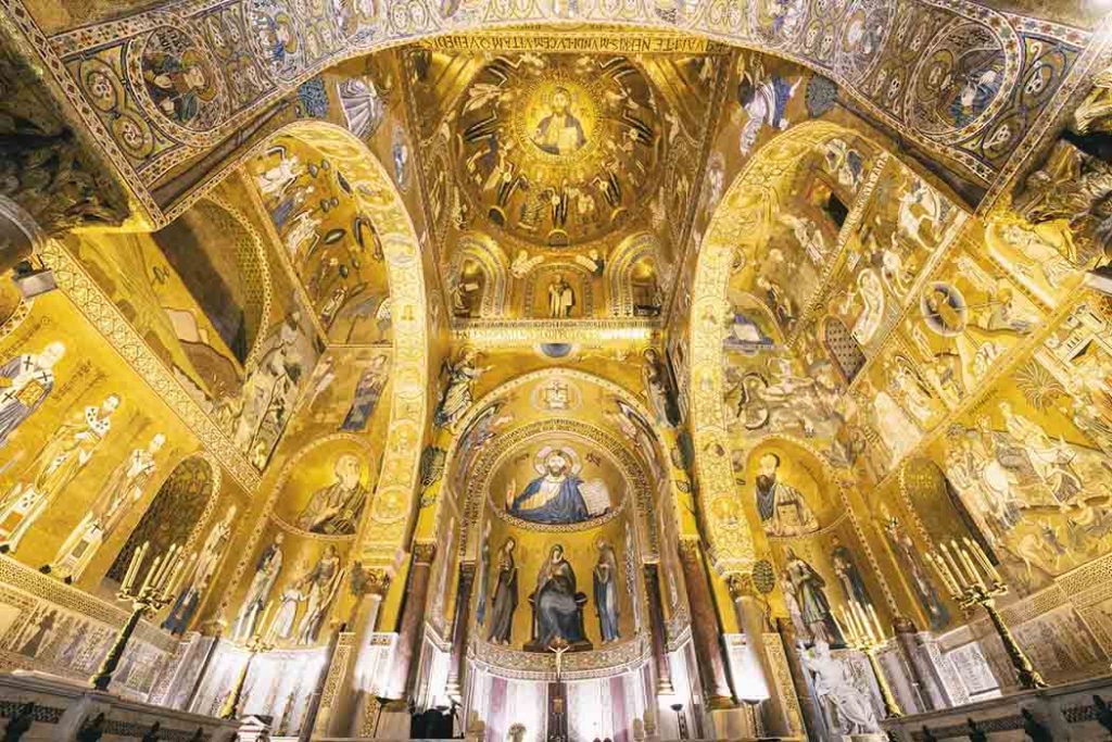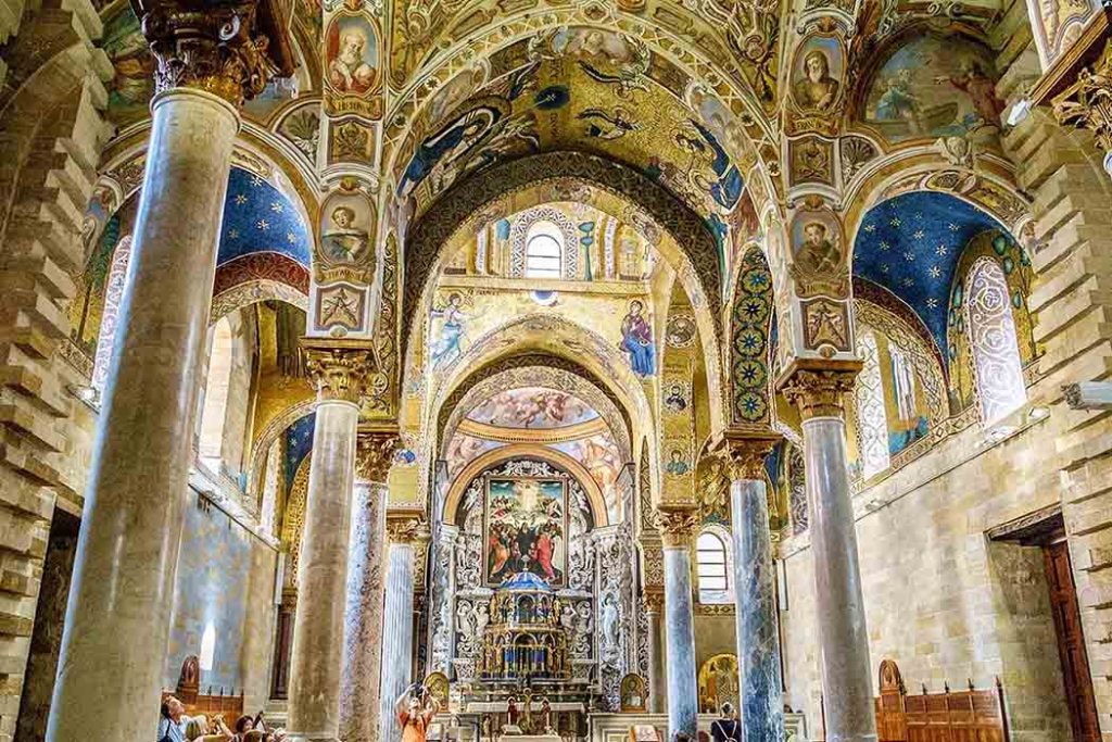 L’élément le plus remarquable de la Chapelle Palatine est sa magnifique décoration en mosaïque. Les motifs bibliques qui recouvrent tout le mur intérieur de l’église sont éblouissants. La voûte, en marqueterie de bois, est décorée de motifs arabes complexes, reflétant les caractéristiques artistiques de l’intégration multiculturelle.